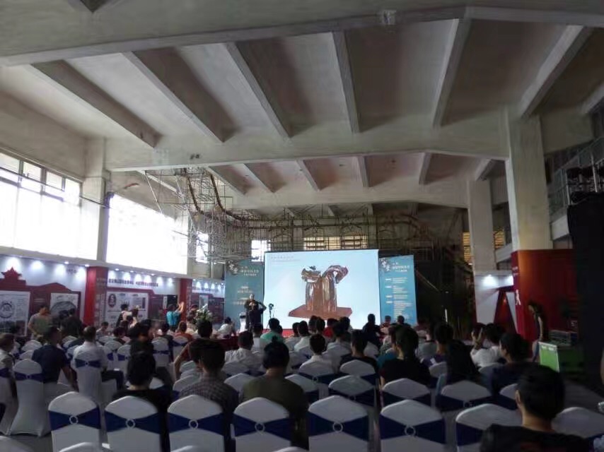 由廣東石灣陶瓷博物館等主辦的石灣對話中國名窯學術專題講座,今天下午在石灣古鎮文創園舉行。著名臺灣陶藝家李茂宗,正在闡述現代陶藝理念和中國陶藝之興起。