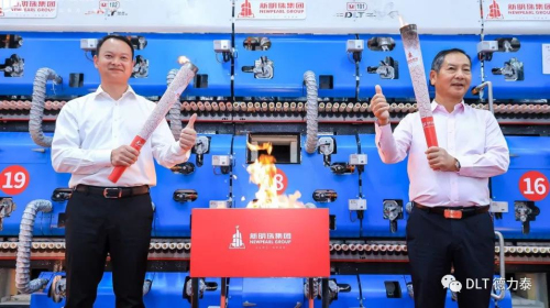 點火儀式上,新明珠集團董事長葉德林致辭,以“龍騰火耀,智造未來”為主題,詮釋了新明珠“二十八載薪火傳承,不負眾望砥礪前行”,表達了對新明珠蓬勃未來的殷切希望和對德力泰打造的全球最長的“能效標桿數智時代”碳中和巖板雙層窯表示衷心感謝!