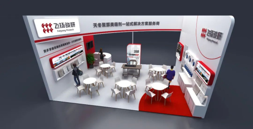 本場展會的設計是通過極簡主義強調品牌,在許多展會上,大多數品牌都傾向于采用復雜的展臺設計理念,飛揚駿研則采用簡約的設計,用著簡單、中性的顏色和少量的裝飾設計的手法,目的在于把受眾的目光吸引到我們的天冬聚脲樹脂、美縫膠條等展品上。飛揚駿研的主色調是紅色,展臺采取紅白相間的設計,適配了飛揚駿研的主色調。