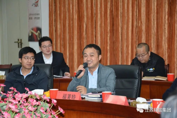 2023年11月11日,由拜富集團舉辦的《玻璃釉料應用技術》座談活動在江蘇宜興拜富科技園召開。來自福萊特、旗濱、耀皮、飛天、中力、銀泰豐、銀升、福坤、發德、明陽等周邊玻璃深加工企業的嘉賓共聚拜富,與公司研發、銷售部門等相關負責人,共計30余人一起參加了本次活動。此次活動,旨在加深玻璃深加工行業上下游的交流合作,降低玻璃產品成本,提高產品性能;顒佑砂莞豢萍汲崭笨偨浝砝钊f景主持,拜富集團董事長王美蘭出席會議并作歡迎致辭。