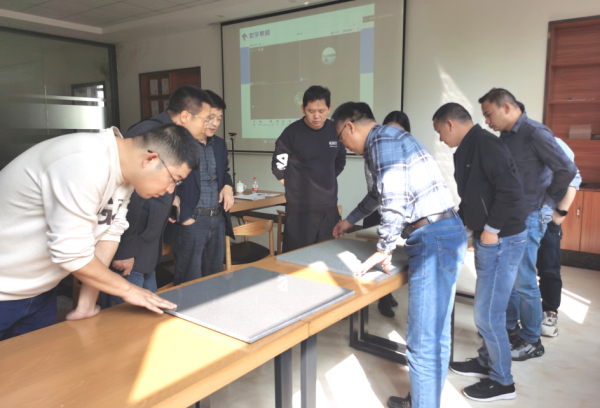 2024年3月23日,宏宇集團“防滑防污通體大顆;◢弾r瓷磚的關鍵技術及產品開發”科技創新項目在廣西桂林理工大學進行項目成果評價,被認定達到“國際領先水平”!本次會議由北部灣產權交易所集團股份有限公司組織召開,專家組成員包括景德鎮陶瓷大學材料學院院長/二級教授汪永清、桂林理工大學材料科學與工程學院二級教授張寶林、桂林理工大學材料科學與工程學院二級教授方亮、桂林電子科技大學機電工程學院教授陳雪、廣西交科集團、廣西建筑材料科學研究設計院教授級高級工程師陳向榮。宏宇集團廣西宏勝生產基地總經理趙鳳鵬、宏宇集團技術中心科長丁英美、副科長蔡三良、技術部主任宋樹剛、副主任王帆、行政辦經理溫泉、企劃公關部副總監姚區等企業代表參加會議。