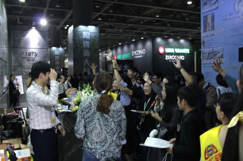除了設計師以外,來自國內外的客商也絡繹不絕地涌進亞細亞的展位。來自東莞的吉小姐來到展位前開門見山地表示要代理亞細亞瓷磚。「我從各個方面、渠道考察了亞細亞半年的時間,無論是宣傳推廣還是產品,亞細亞都做得十分出色,所以這次來先跟亞細亞做一個深入的溝通!箛鴥葮I務開展得如火如荼之外,國外市場同樣表現搶眼。意大利、美國、埃及、法國等地的外商紛沓而至,其中來自埃及的客商在參觀完亞細亞瓷磚的展位后當場下單,并信心滿滿地表示看好亞細亞瓷磚在當地的表現。