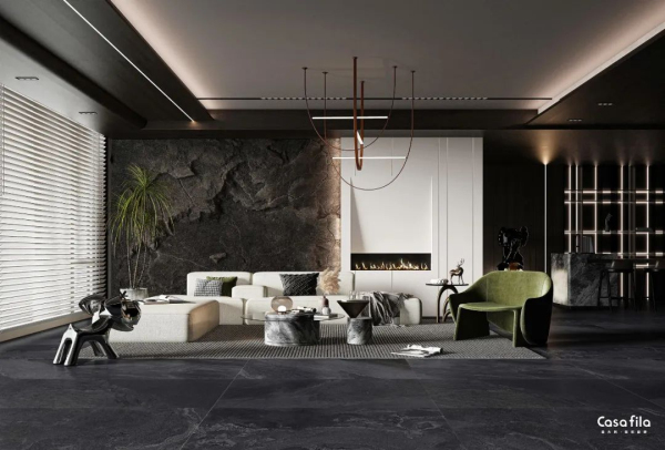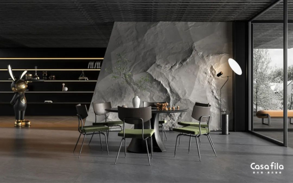 細膩的紋理變化,似奔涌而至的煙霞霧氣,帶著一種深邃如詩的質樸美,在空間中自由延展,觸手可及的質感,保留原始的天然氛圍,于繁復中還原生活的純粹。
